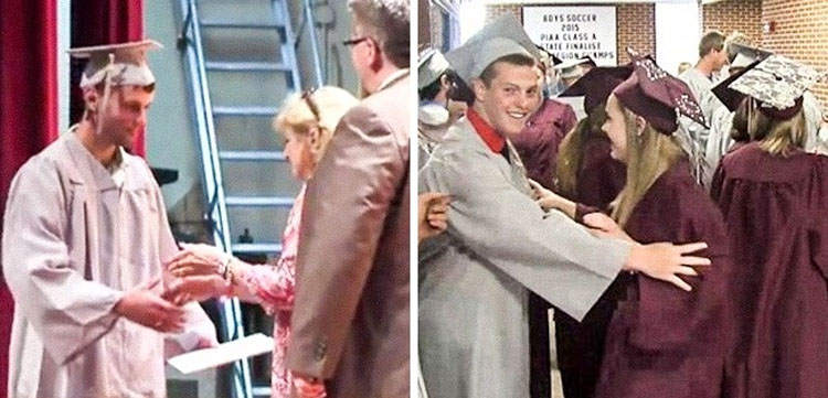 Scott Dunn tuvo un grave accidente de coche tan sólo unos días antes de su ceremonia de graduación de la secundaria. Después de haber despertado de un coma, el chico descubrió que se había perdido el día más importante de su vida, y por eso estuvo muy molesto. Pero cuando el joven comenzó a recuperarse, el director de la escuela contacto con la familia de Scott y les dijo: «Queremos hacer algo especial para su hijo.» Al final resultó que, los compañeros de Dunn decidieron volver a la escuela y volver a recrear la graduación sólo para él. Al igual que durante la ceremonia original, los estudiantes estaban vestidos con sus togas académicas y los profesores hicieron sus discursos de graduación. Sin embargo, Scott fue el único que fue llamado para recibir su diploma. El joven conmovido dijo: «No sé cómo explicarlo«.