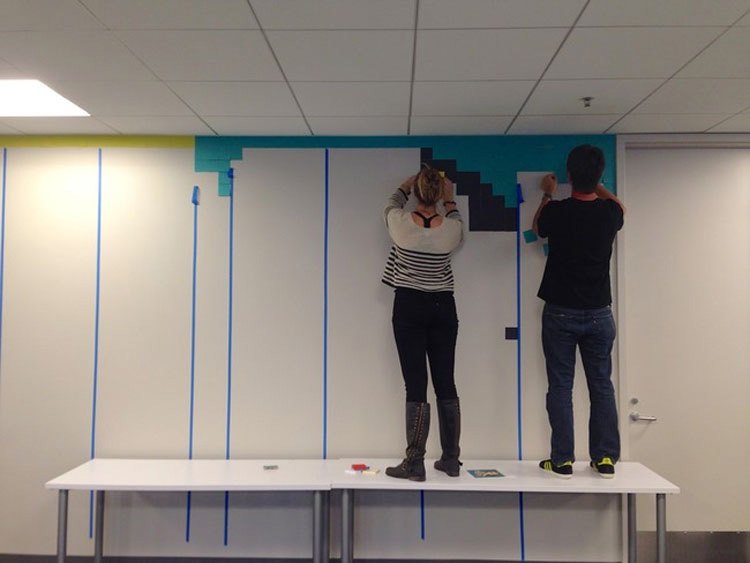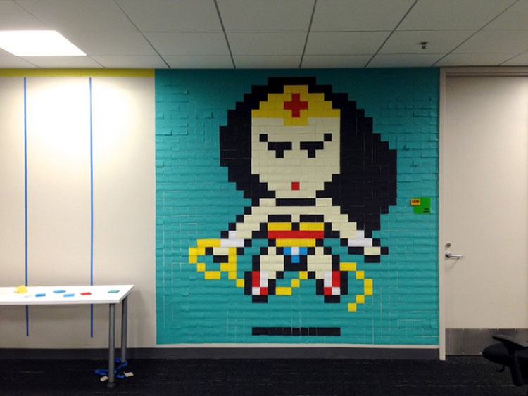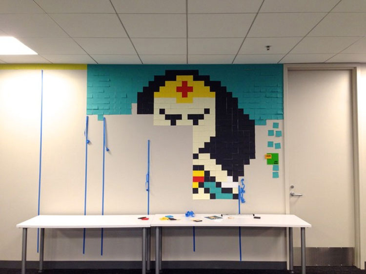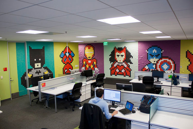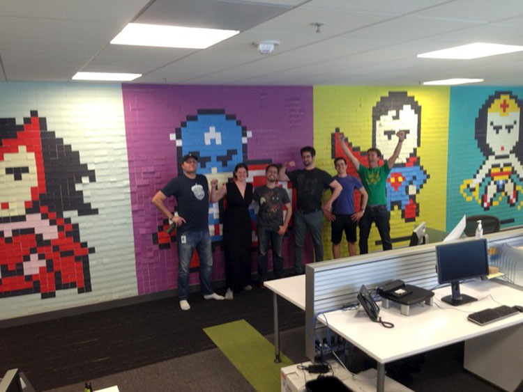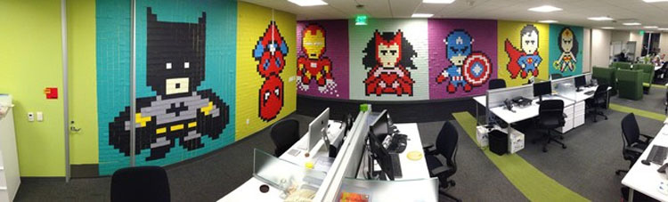 El equipo decidió que querían algo colorido y divertido para la oficina. Los superhéroes fueron la opción preferida porque son fáciles de reconocer y relacionarlos. Además se eligió el diseño pixelado porque sería el más fácil de recrear, tenía un aspecto divertido y alegre, y no requiere ninguna habilidad artística particular. Además, ¡era algo que todo el mundo podría ayudar a hacer!