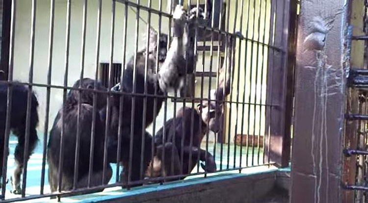 En una muestra notable de solidaridad entre especies de primates encarcelados en el zoológico Phoenix en Miyazaki, Japón, se ha observado como un orangután comparte su comida con un grupo de chimpancés en una jaula fuera de su alcance. Los guardianes dicen que este feliz orangutan de 21 años de edad, ha hecho que sea habitual que ofrezca alimentos que le dan a los nueve chimpancés que tiene en una jaula próxima, para que estos llenen sus estómagos.