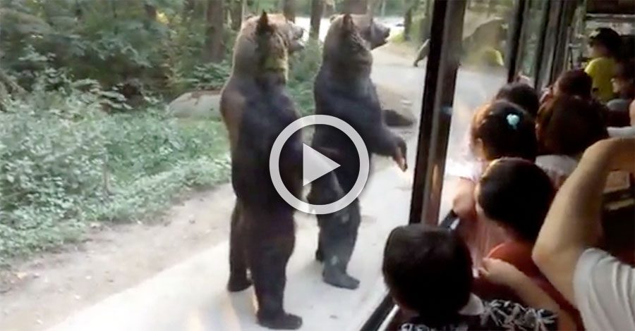 Por extraño que parezca, hay un número sorprendente de grandes y corpulentos osos, que son el centro de atención con su comportamiento inusual. Los que aparecen en el vídeo que puedes ver a continuación parecen ser osos adultos completamente desarrollados, que sorprenden a todo el mundo cuando tratan de saludar a un grupo de turistas. Resultan tan sorprendentes sus movimientos que casi se les podría confundir con un par de chicos que llevan trajes de osos.