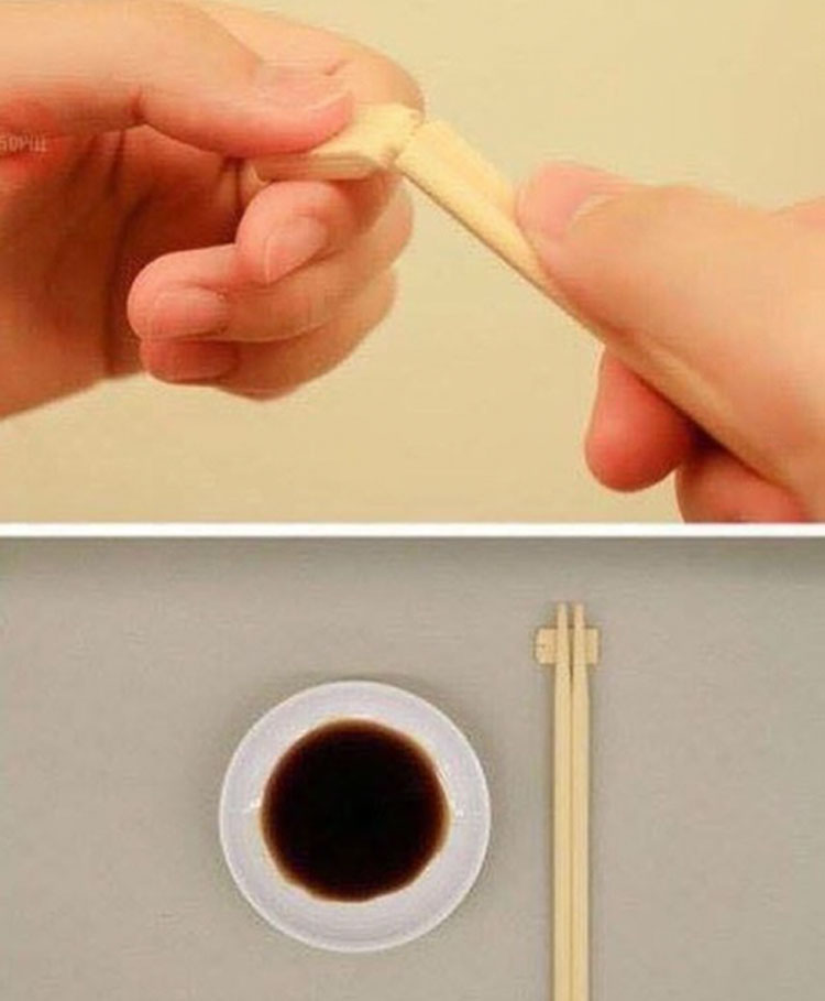 Sí, ese pedazo «inútil» de madera al que nunca prestaste atención, es en realidad algo para que dejes los palillos, con el fin de evitar que se ensucie el mantel.