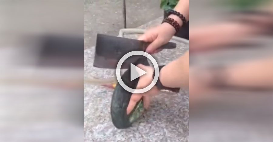 La apertura de ostras después de que están cerradas es un trabajo tedioso, pero abrir una tan grande como la de este video se ve casi imposible. Por eso la mujer toma un gran cuchillo de carnicero y se esfuerza para abrir la ostra. Sin embargo, cuando finalmente lo hace – ¡increíble! La mujer comienza a retirar docenas de diminutas y preciosas perlas blancas que había en ella.