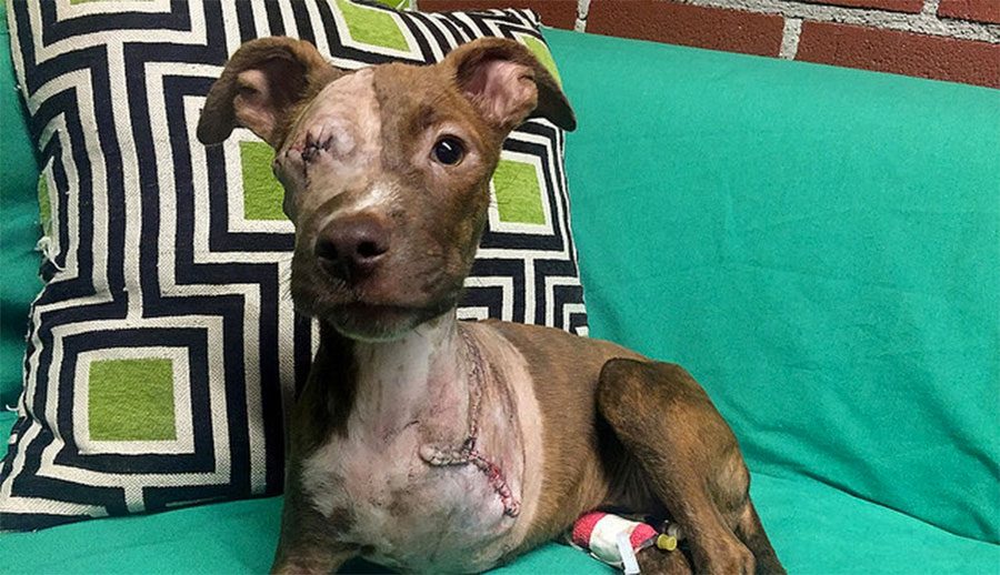 Al final, a Kayla le fueron extirpados el resto de su ojo derecho y su pata delantera izquierda. Ahora está curada, y a pesar del terrible abuso que ha sufrido, le encanta dar besos y que le froten su vientre. Kayla es la definición de que nunca hay darse por vencido.