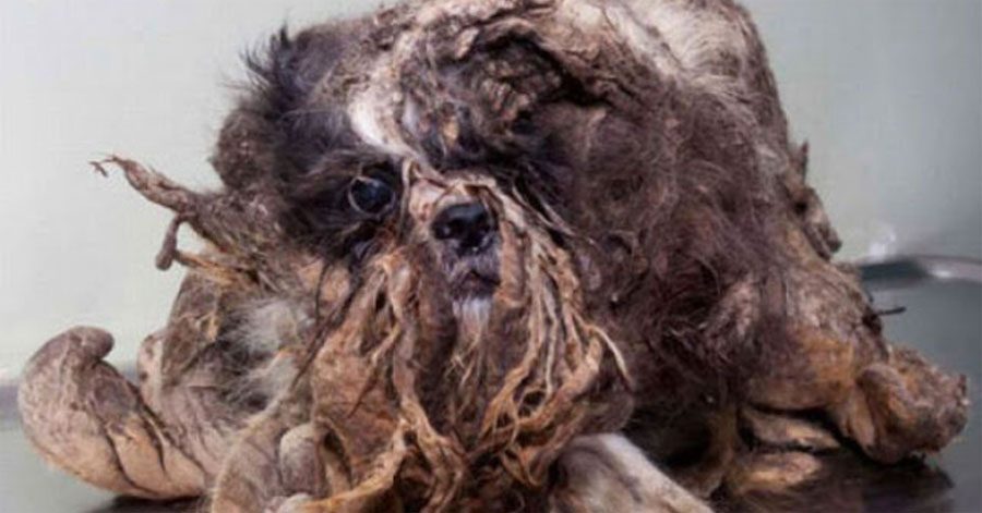 Canadá también cuenta con este tipo de problemas. La Sociedad de Quebec para la Protección de los Animales encontró a este pequeño bribón de una forma trágica en las calles: Su pelo estaba tan enmarañado y sucio que cuando lo vieron por primera vez pensaron que era un montón de basura.
