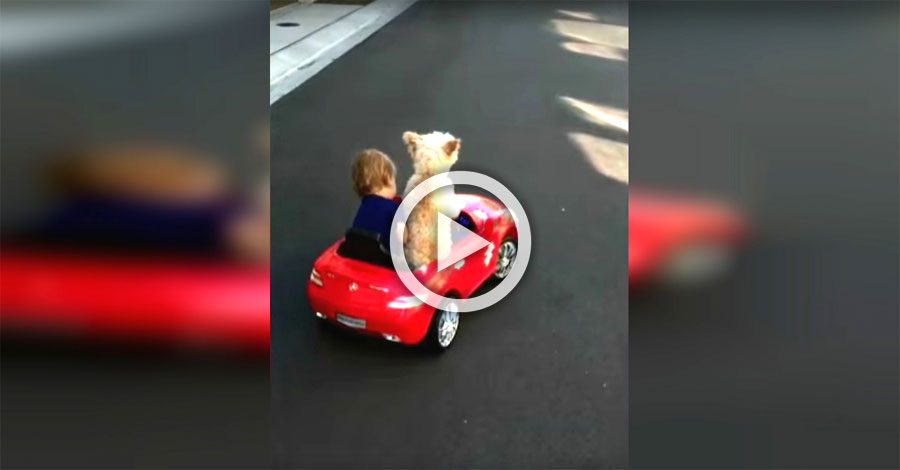 Cuando mamá vio a su pequeño y querido bebé disfrutando del mejor momento de su vida en su coche nuevo, sabía que tenía que empezar a grabar su adorable carita. Estaba conduciendo en su nuevo juguete con su mejor amigo peludo montado a su lado.