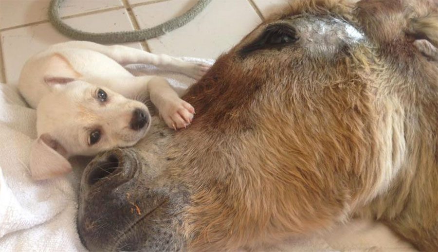 Con tan sólo unos meses de edad, este pequeño burro sabe mejor que nadie que el mundo puede ser un lugar frío y cruel – pero ahora está aprendiendo lo que significa ser amado. De hecho, él incluso ha encontrado al más improbable de los pequeños amigos.