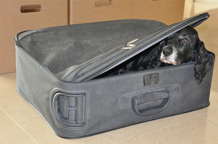 Ahora siempre que Mel se acerca a una maleta, el perro se vuelve loco de emoción. El pobre perrito piensa que está a punto de ser llevado de viaje a ver a mamá…