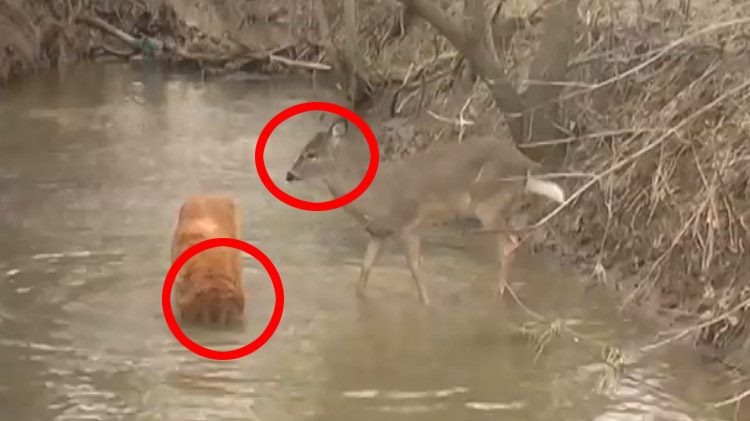 Un ciervo tropezó accidentalmente con un perro… ¡Lo que sucedió después es totalmente inesperado!