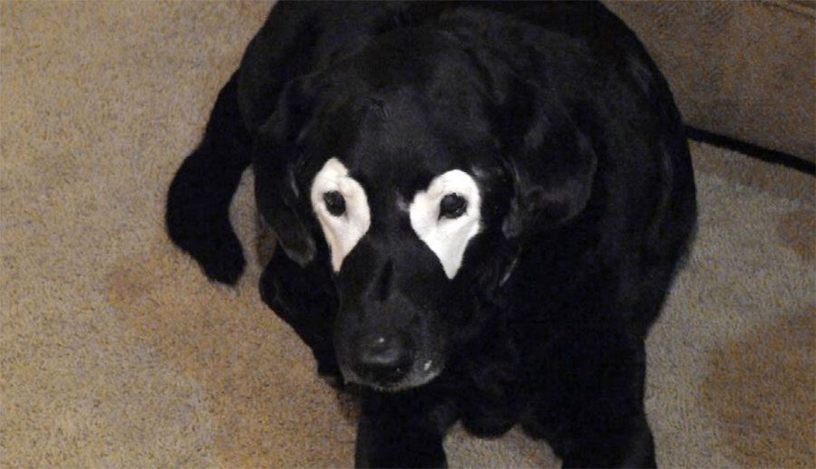 De acuerdo con sus propietarios, Niki y Tim Umbenhower, la piel alrededor de los ojos del labrador negro empezó a ponerse blanca hace un año debido al vitíligo, una enfermedad algo desconocida, aunque no es grave y que causa la pérdida de pigmento de la piel.
