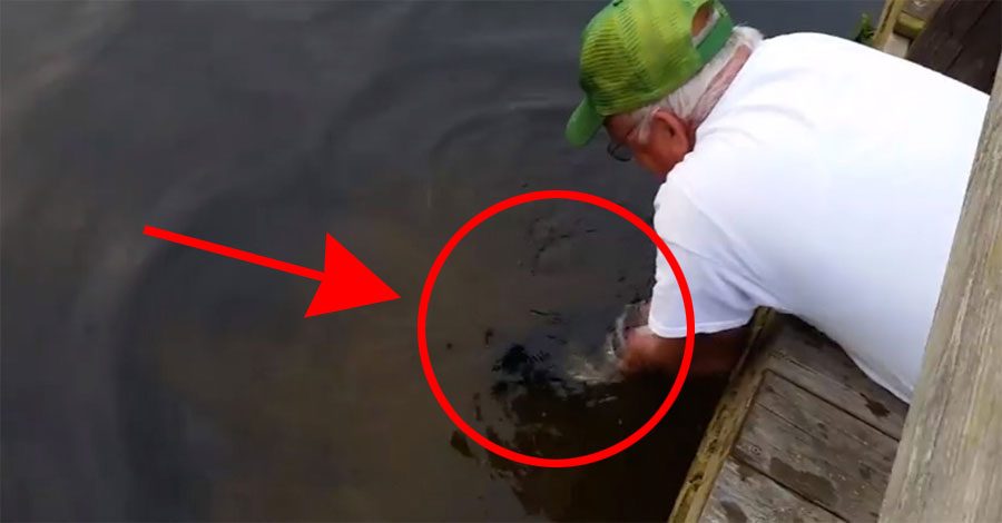 En el video, el hombre mayor se inclina sobre el muelle poniendo un pequeño trozo de cebo en su mano desnuda. Segundos más tarde, ¡captura un gran pez por la boca! Qué talento y con lo que parece pesar el pez. El pescador hace que parezca fácil, pero no lo es en absoluto. Por suerte para este pez, el hombre después lo deja de nuevo en el agua para que nade libre.