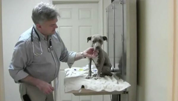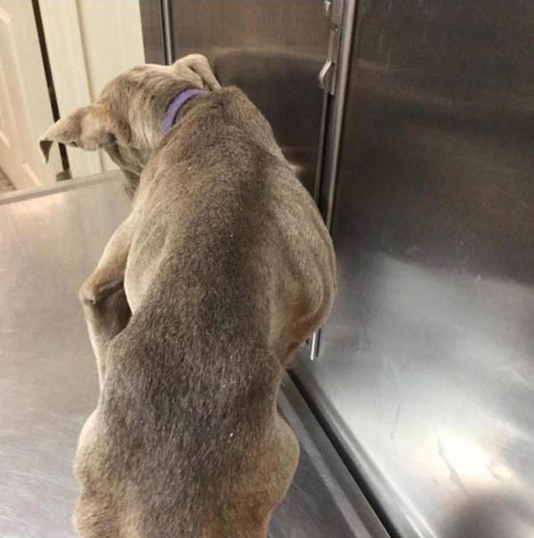 Esta es Graycie Clair, una pit bull que se encontraba sola y cerca de la muerte en un camino de tierra en Georgia. Cuando la examinó el Dr. Mathis, descubrió que Graycie estaba sufriendo de hipotermia, hambre y hemorragias internas.
