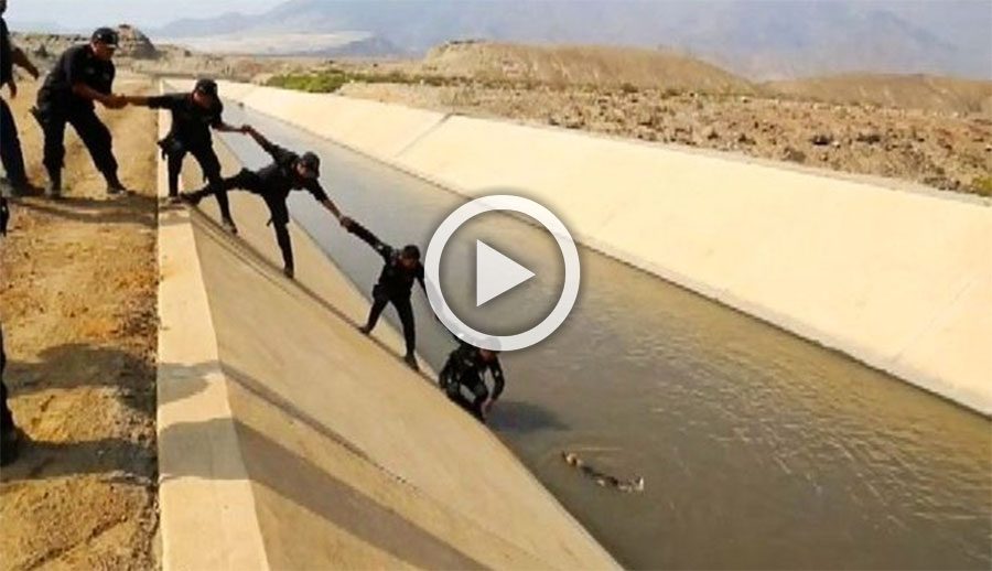 Hace unos días, agentes de la Policía Nacional del Perú se unieron para salvar a un cachorro que estaba a punto de ahogarse. El desesperado animal había caído en un canal de riego cerca de la ciudad de Trujillo, pero debido a que los bancos de hormigón eran muy empinados, no era capaz de salir por su cuenta.