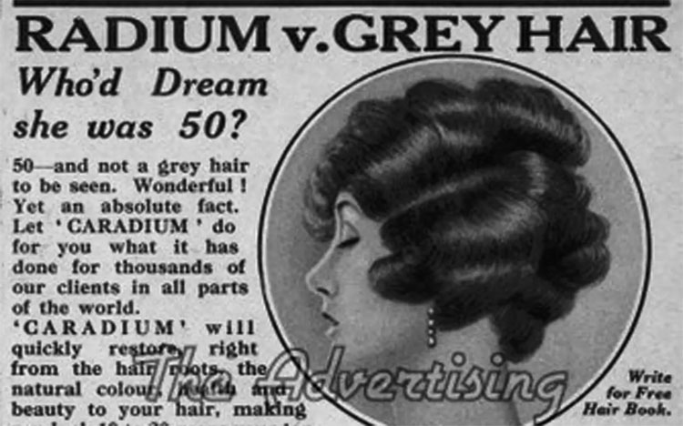 Vendedores de tiendas británicas vendieron cremas para la cara, sombras de ojos, barras de labios y jabones «con radio» que harían que su belleza fuera «realmente brillante». Había tabletas de energía de radio e incluso ropa interior «con radio» para mejorar la vida sexual de los consumidores.