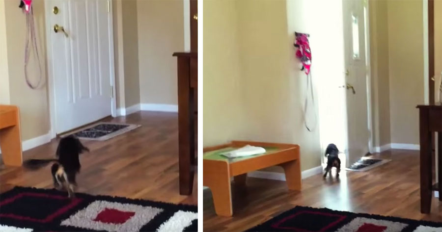 Este perro escucha a alguien en la puerta. Ahora mira quién entra por la puerta…