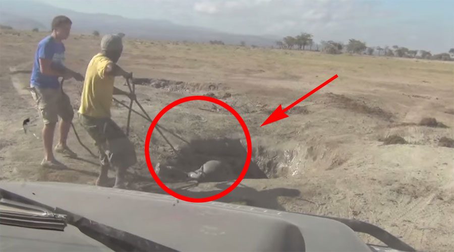 Al parecer, lo único que tenían que hacer era conseguir que la cuerda pasara por debajo del elefante y luego usar la camioneta para sacarlo. Sin embargo, esto era mucho más fácil de decir que de hacer.