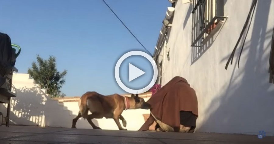 ¿Hay alguien aquí? Se paseaba por el patio sospechando que tal vez, sólo tal vez, su dueño estaba en casa. Fue entonces cuando, de repente, decidió dar a la manta un segundo vistazo …