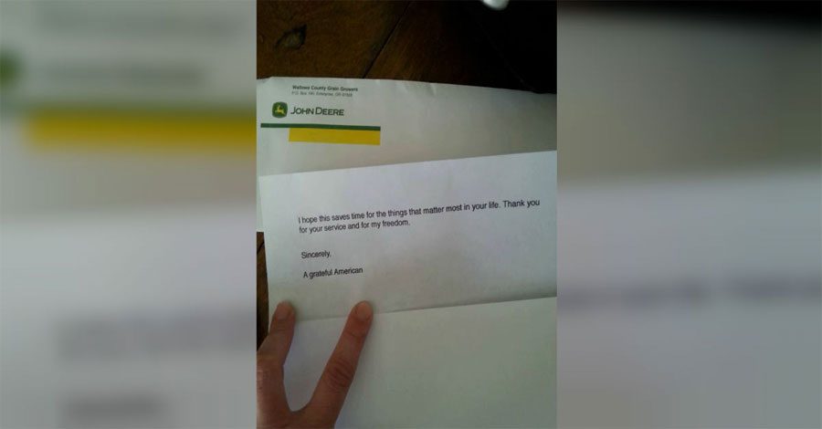 La nota era anónima, pero daba las gracias a Christopher por su servicio militar. También decía que esperaban que Christopher pudiera usar este regalo para pasar más tiempo con su familia.