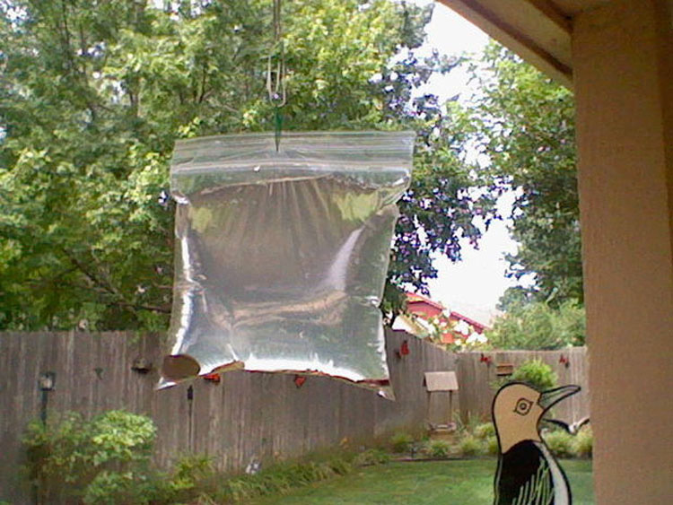 Algunos dicen que esto realmente confunde visualmente a los insectos por la refracción de la luz a medida que avanzan hacia la bolsa. ¡Pero independientemente de cómo funciona, no hay duda de que en realidad es una brillante solución!