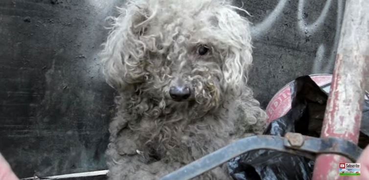 En 2012 la organización Hope For Paws recibió una llamada sobre un perro pequeño que vivía entre un montón de basura en Los Ángeles y que estaba en muy mal estado. Cuando la encontraron (era una perra), pudieron comprobar de inmediato que la perra estaba completamente ciega de ambos ojos. La perrita estaba tan asustada cuando se acercaron a ella que se quedó inmóvil por completo. Aunque cómo dicen en el vídeo, una de sus primeras reacciones fue orinarse de lo aterrada que estaba. Decidieron llamarla Fiona.
