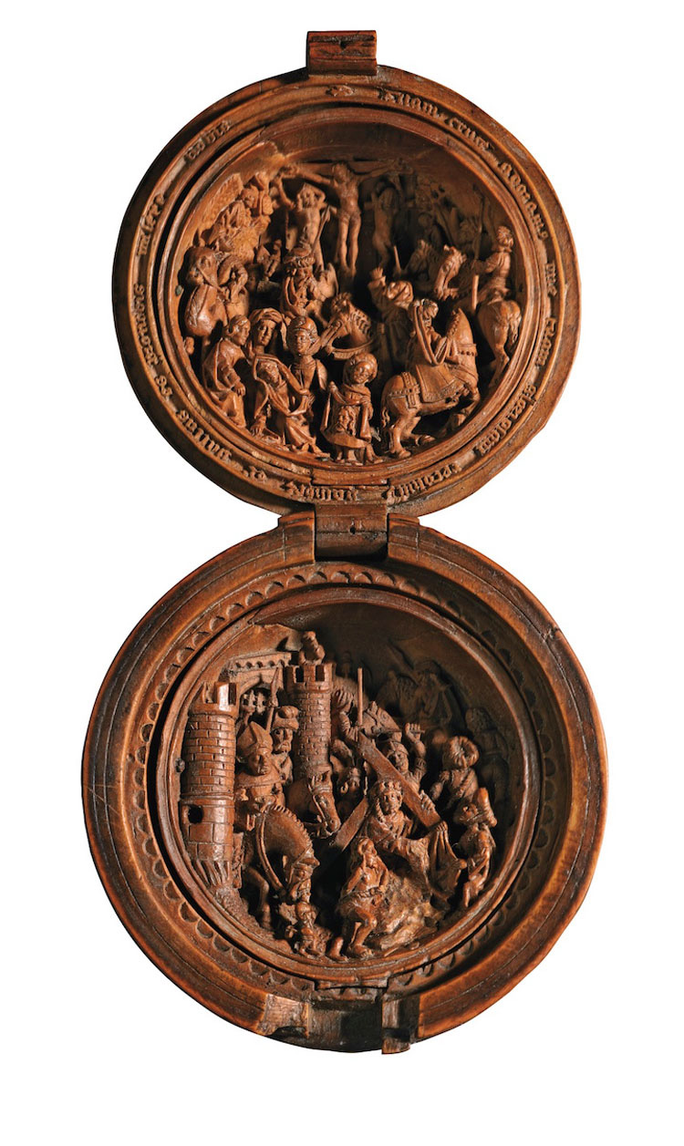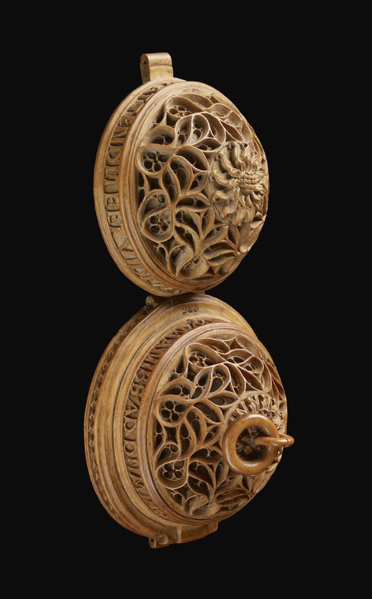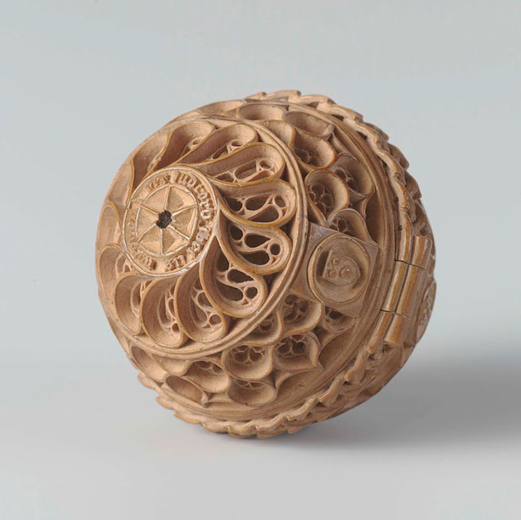 Los elementos decorativos son diminutos, mide sólo unos pocos centímetros de diámetro. Cuando está cerrado, el objeto se parece a una «nuez» elaboradamente tallada. Podía ser usado en un cinturón o en un rosario. Una vez abierto, el interior revela escenas religiosas increíblemente detalladas, como la Crucifixión. A menudo se introducían fragancias aromáticas con la intención de mejorar la experiencia emocional del usuario. Delicado y complejo, este tipo de rosarios eran muy apreciados como obras de arte y se pueden encontrar en la actualidad en exhibiciones en muchos de los principales museos del mundo.