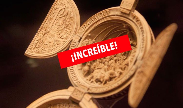 Este maravilloso rosario (llamado prayer nut, nuez de rezo) está extravagante tallado en madera de boj, se cree que fue realizado por Adam Theodrici durante la Edad Media (siglo XVI) y tenían el objetivo de ser transportados y utilizados para devoción privada. Lo tenían principalmente los ricos del norte de Europa, este tipo de rosarios eran tanto un símbolo de estatus como un signo de fe, sólo los que tenían dinero podían pagarlos.