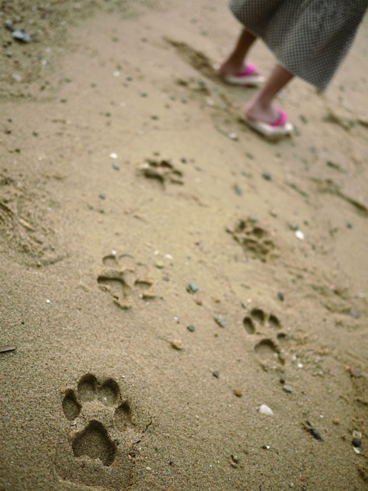 Pero estas sandalias de playa no son normales. Al darles la vuelta, podrás ver que las plantas tienen adorables huellas de animales pequeños en ellas.
