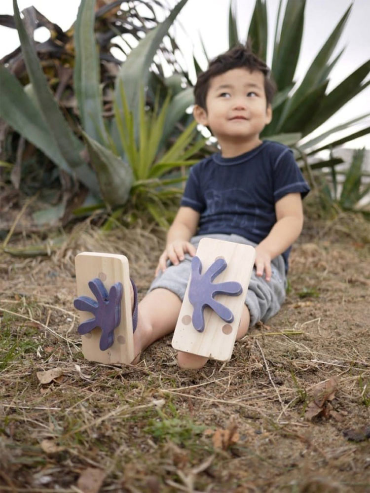 El diseñador y fundador Kaz Shiomi quería crear unos zapatos para niños que fueran divertidos y emocionantes de llevar, y que les permitiera dejar una marca dondequiera que fueran.