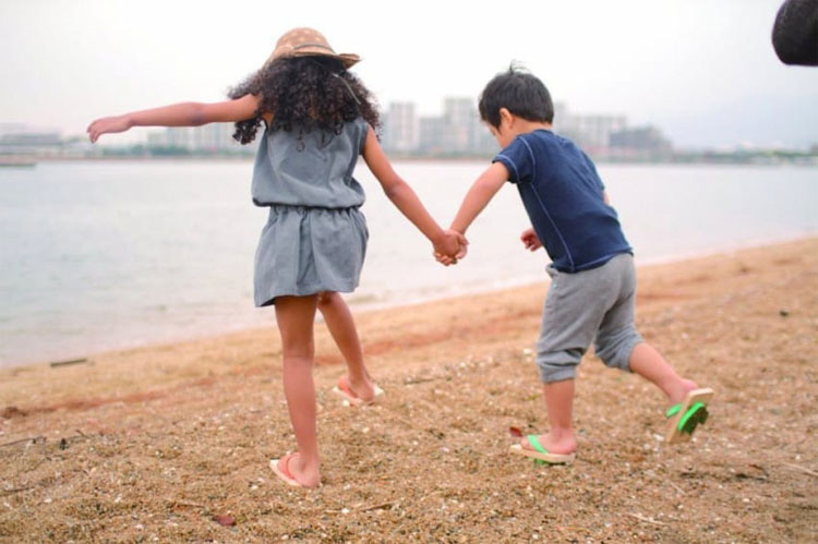 Les encanta sumergir los pies en el agua cuando la marea sube, y hundir los pequeños dedos de sus pies en la arena blanda.
