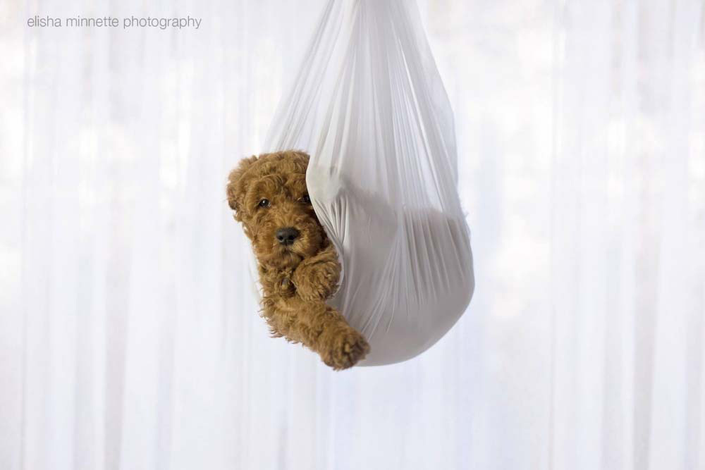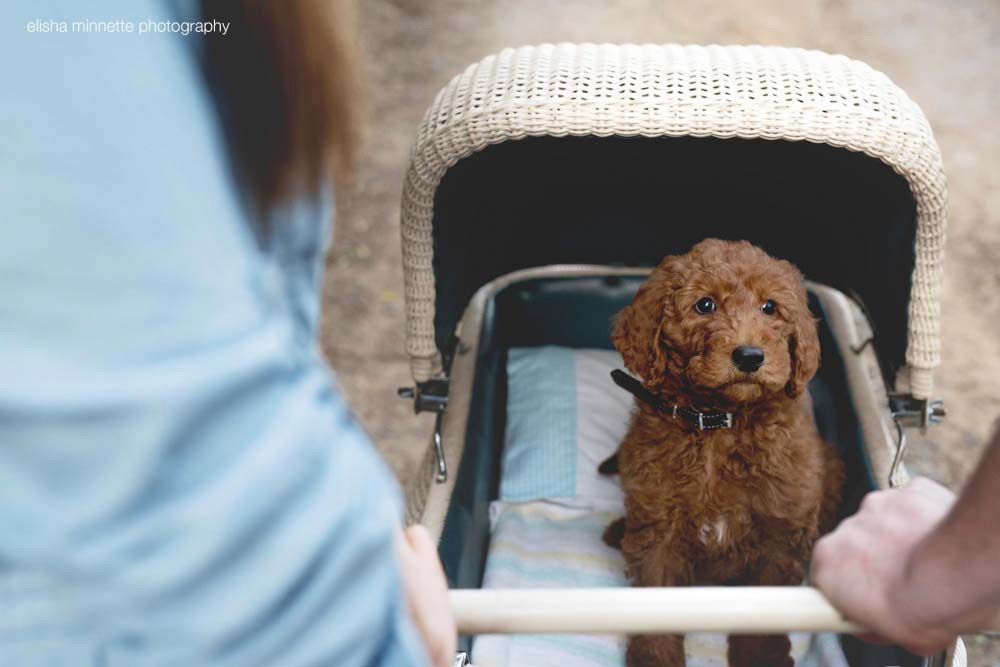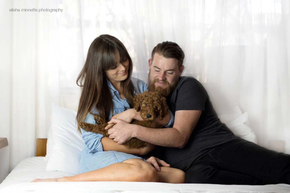 La idea original es de la fotógrafa Elisha Minnette y se le ocurrió cuando la pareja iba a ir a recoger al cachorro a un refugio.