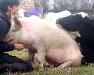 Una vaca y un cerdo ‘luchan’ por llamar la atención de su cuidador en uno de los vídeos más felices que hemos visto NUNCA
