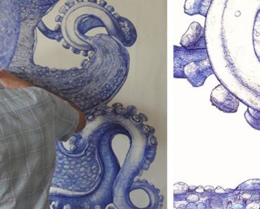 Este artista ha usado bolígrafos desechados durante 1 año para dibujar este pulpo gigante