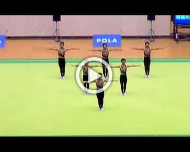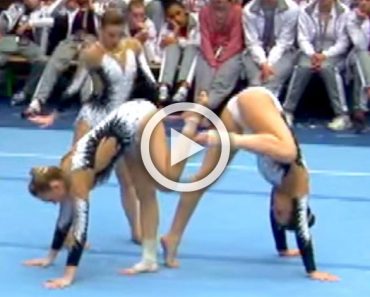 Parece que dos gimnastas están a punto de golpearse, pero atención a la tercera …