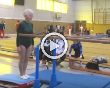 Esta señora de 86 años se sitúa frente a unas paralelas. ATENCIÓN a sus piernas en el minuto 0:10