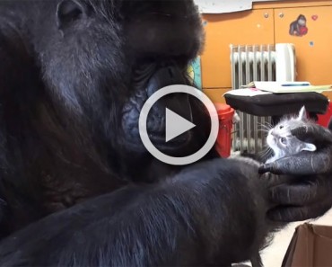 La gorilla Koko adopta dos gatitos por su cumpleaños, un momento CONMOVEDOR