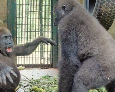 Un gorila camina hacia ellos. ¿Pero qué tiene entre sus manos? Nadie podía creerlo