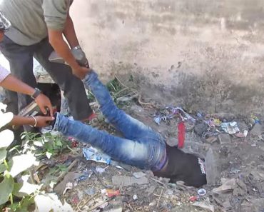 Lo agarran de las piernas para empujarlo en un agujero. ATENCIÓN a cuando lo sacan…