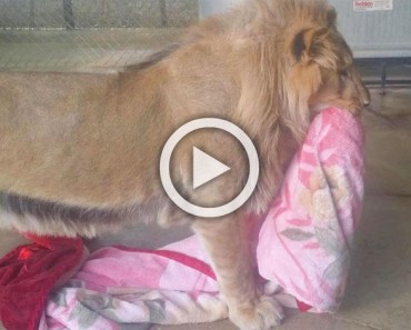 Este gran león se niega a dejar su manta por la razón más ADORABLE que puedas imaginar