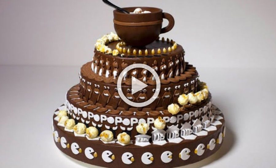 Por ejemplo, esta tarta de boda que fue todo un espectáculo de luces. Pero esta tarta de chocolate lleva la animación de vuelta a donde comenzó. Imagen a imagen. Hay que ver el vídeo a continuación para ver de lo que estoy hablando…