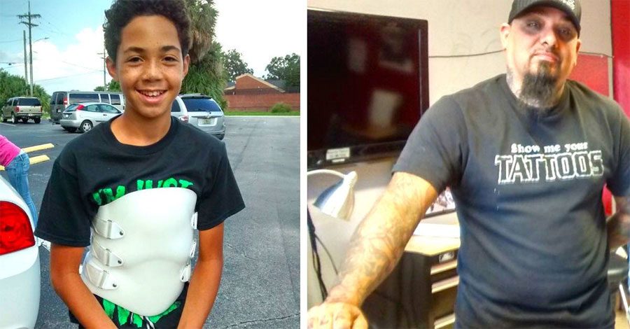 Ashley, la madre de Xavier escribió en su post: «Estoy tan conmovida que tenía que compartir esta historia positiva. Mi hijo tiene escoliosis, y tiene que llevar un corsé o soporte para la espalda hasta deje de crecer. Se estaban burlando y acosando en la escuela, por lo que puse algo en Facebook para ver si podía hacer que su soporte en la espalda fuera más ‘cool’. Un hombre llamado Anjel se acercó a mí, y con su aerógrafo ha hecho un diseño sobre su soporte para la espalda, sin coste alguno. Puede no parecer gran cosa, pero para mi hijo, es todo! »