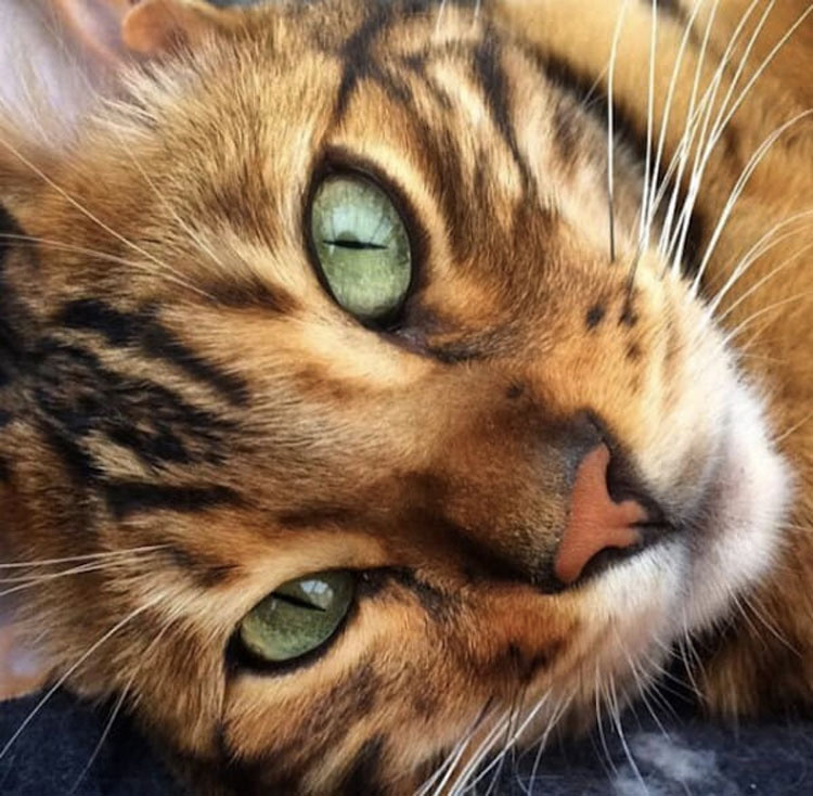 El patrón del pelaje de Thor es tan hermoso, junto con sus hipnotizantes ojos verdes, que fácilmente podría ser uno de los gatos más bonitos que hemos visto nunca. ¡Pero lo que es tan especial acerca de su pelaje es que en realidad se parece a un tigre de Bengala en miniatura!
