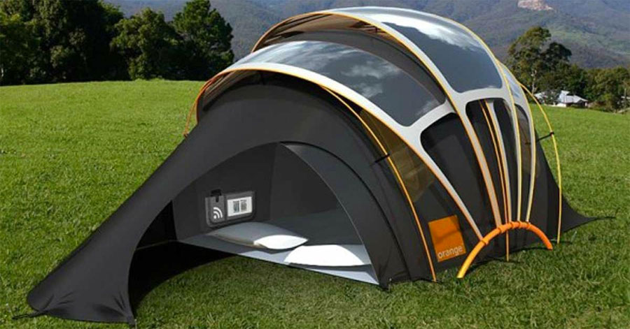 La empresa de diseño Kaleidoscope se ha unido con la empresa de telecomunicaciones del Reino Unido Orange, para ofrecer la que podría ser la tienda de campaña del futuro. ¿Lo más notable? Que gracias a sus paneles solares tendría energía para todos nuestros dispositivos.