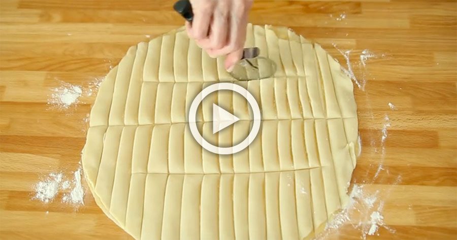 Usando un cortador de pizza, corta la masa en tiras. Su siguiente paso te hará salivar...