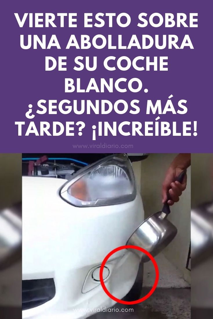 En el vídeo que podemos ver a continuación, vemos cómo Mike agarra un balde de agua hirviendo y lentamente lo vierte sobre el profundo hueco en la esquina de su parachoques (o paragolpes). Es difícil decir qué tipo de coche conduce, pero nadie quiere un hueco gigante en su coche blanco. A medida que vierte el agua caliente sobre el parachoques, él mete la mano por detrás de la parte delantera del coche, bajo el motor y tan sólo presionando un poco el parachoques vuelve de nuevo a su lugar.
