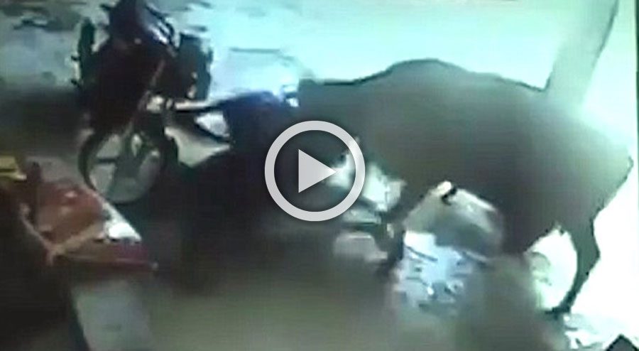 Unos asaltantes tratan de agredir a una niña. Ahora mira la reacción de la vaca...