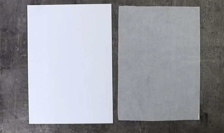 Recorta un trozo de papel de seda para que sea un poco más pequeño que el papel para imprimir.