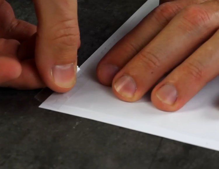 A continuación, pega con cinta adhesiva el papel de seda con el lado brillante hacia abajo, sobre el papel para imprimir.