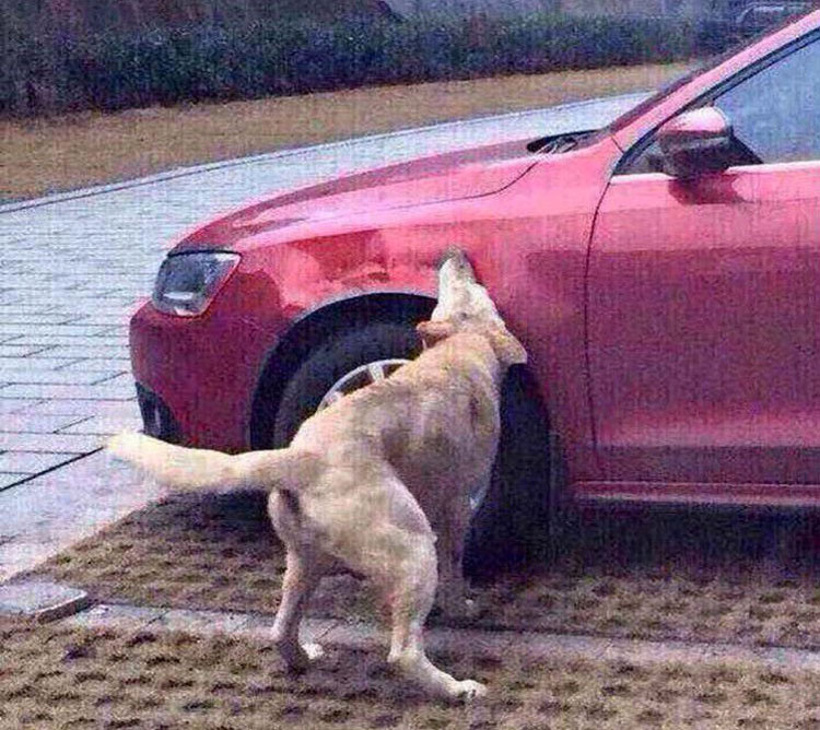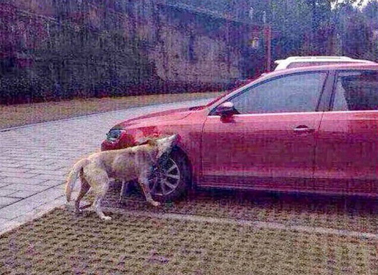 Un perro abandonado y enfadado que había sido golpeado por un automovilista decidió vengarse dañando su más preciada posesión: su coche.