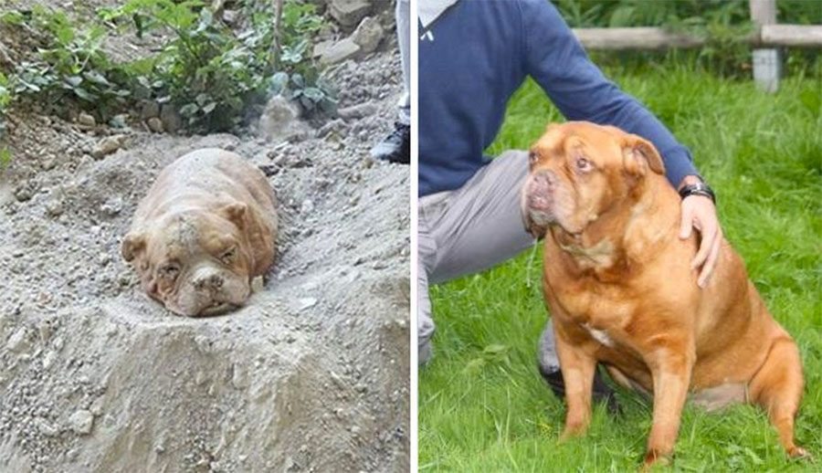 La mastín francés de 10 años llamada Athena fue rescatada a principios del pasado mes de agosto (2015) en un suburbio de París, Francia. Pedro Denis había salido a dar un paseo con su propio perro cuando vio a Athena luchando para mantenerse con vida bajo un montículo de tierra y piedras. Gracias a su rapidez de acción, fue capaz de liberarla de esa tumba temprana justo a tiempo.