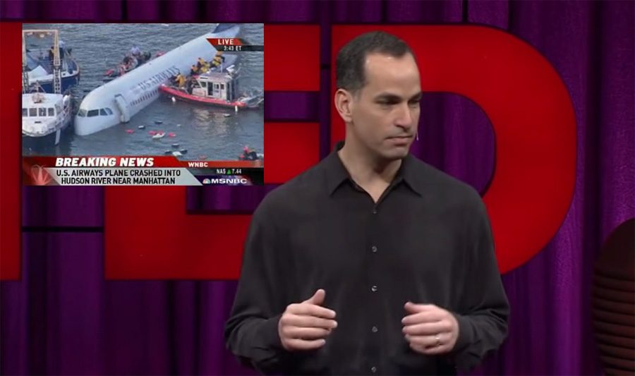 Ric Elias tenía un asiento en primera fila en el vuelo 1549 de US Airways, el avión que hizo un aterrizaje forzoso en el río Hudson en Nueva York en enero de 2009. ¿Qué pasó por su mente mientras el siniestrado avión caía? Ric Elias contó por primera vez en público en las charlas TED, su historia. El vídeo se titula: «Las tres cosas que aprendí mientras se estrellaba mi avión».