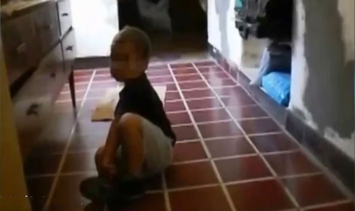 En el vídeo se puede ver cómo niño, de dos años de edad, está jugando en el suelo, mientras su madre habla con él cuando de repente aparece una pequeña criatura que parece haber salido corriendo de una puerta.